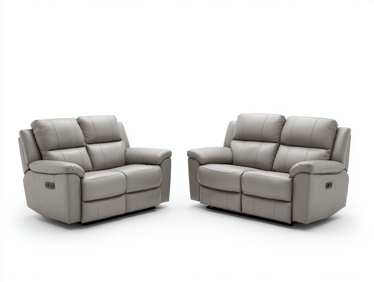 Este conjunto de sofás reclinables está diseñado para proporcionar comodidad y funcionalidad en el salón. Su diseño acolchado con respaldo amplio permite disfrutar de una experiencia de descanso agradable durante momentos de relajación, lectura o entretenimiento en casa.
