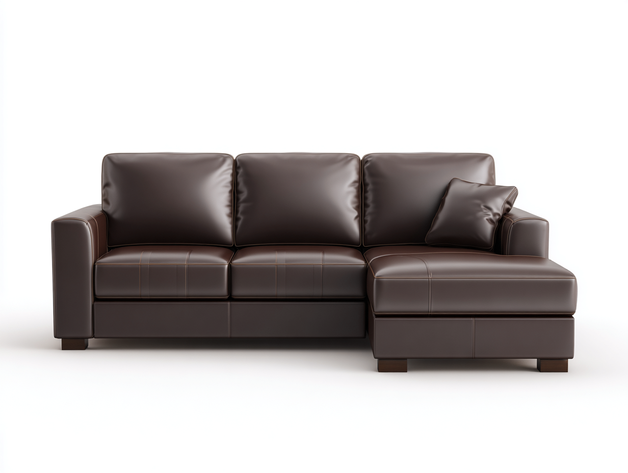 La estructura interna está fabricada con madera resistente que proporciona estabilidad y durabilidad durante el uso cotidiano. El exterior está tapizado en material sintético de color marrón con acabado suave al tacto. Los cojines del asiento y del respaldo cuentan con relleno acolchado que proporciona un soporte cómodo y uniforme.